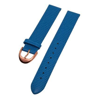 16 mm Blue Leather Replacement Strap with a Yellow Gold Tang buckle. This is a direct replacement for Stuhrling model 299.