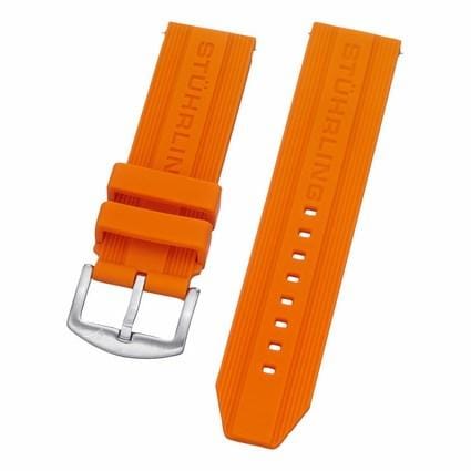 24 mm Orange Rubber Replacement Strap with a Steel Tang buckle. This is a direct replacement for Stuhrling model 314R.