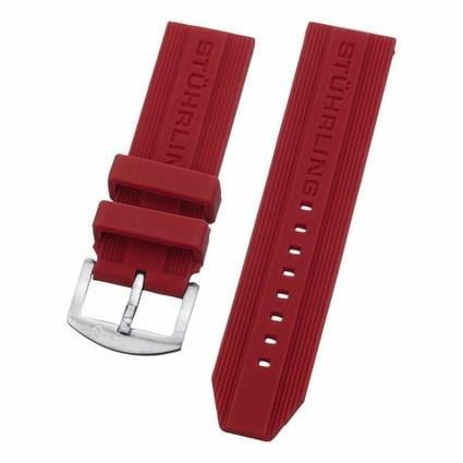 24 mm Red Rubber Replacement Strap with a Steel Tang buckle. This is a direct replacement for Stuhrling model 314R.