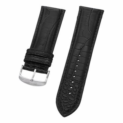 26 mm Black Leather Replacement Strap with a Steel Tang buckle. This is a direct replacement for Stuhrling model 317.