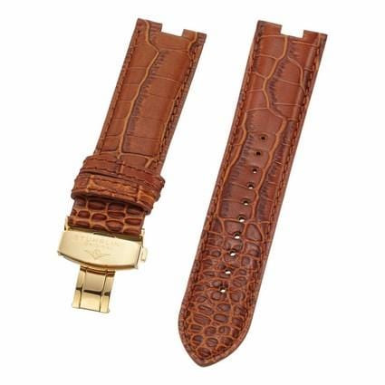 24 mm Brown Leather Replacement Strap with a Yellow Gold Deployant buckle. This is a direct replacement for Stuhrling model 330.