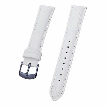18 mm White Leather Replacement Strap with a Blue Tang buckle. This is a direct replacement for Stuhrling model 360L.