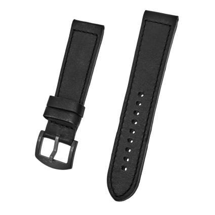 24 mm Black Leather Replacement Strap with a Steel Tang buckle. This is a direct replacement for Stuhrling model 427.