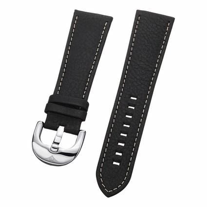 23 mm Black Leather Replacement Strap with a Steel Tang buckle. This is a direct replacement for Stuhrling model 4AT.