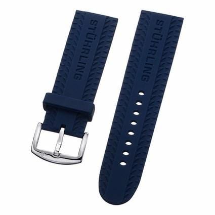 26 mm Blue Rubber Replacement Strap with a Steel Tang buckle. This is a direct replacement for Stuhrling model 4ATXL.