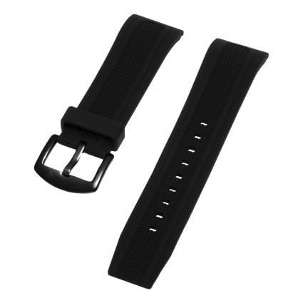 24 mm Black Rubber Replacement Strap with a Black Tang buckle.