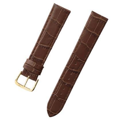 20 mm Brown Leather Replacement Strap with a Yellow Gold Tang buckle.