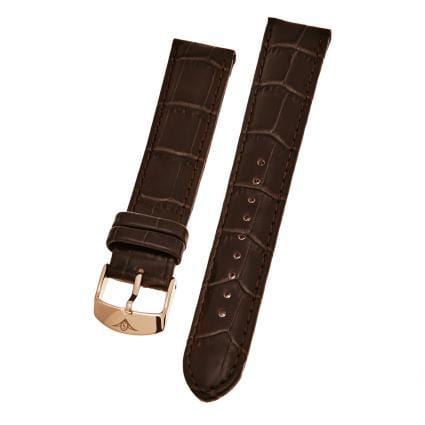 22 mm Brown Leather Replacement Strap with a Rose God Tang buckle. This is a direct replacement for Stuhrling model 557.