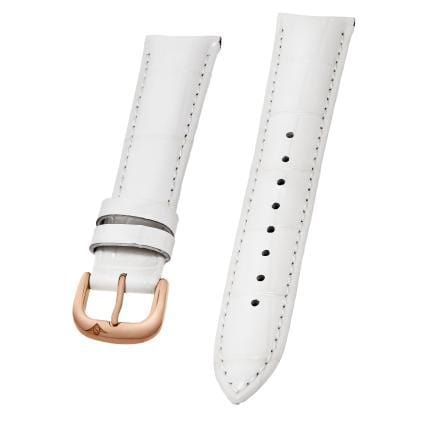 18 mm White Leather Replacement Strap with a Rose Gold Tang buckle. This is a direct replacement for Stuhrling model 563.