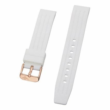 18 mm White Rubber Replacement Strap with a Rose Gold Tang buckle. This is a direct replacement for Stuhrling model 565L.