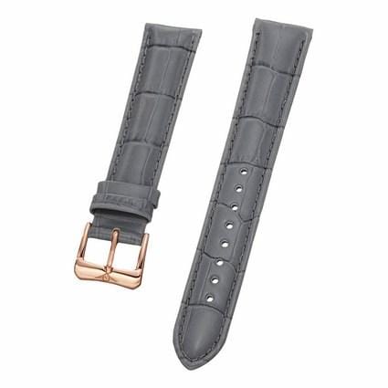 18 mm Grey Leather Replacement Strap with a Rose Gold Tang buckle. This is a direct replacement for Stuhrling model 710.