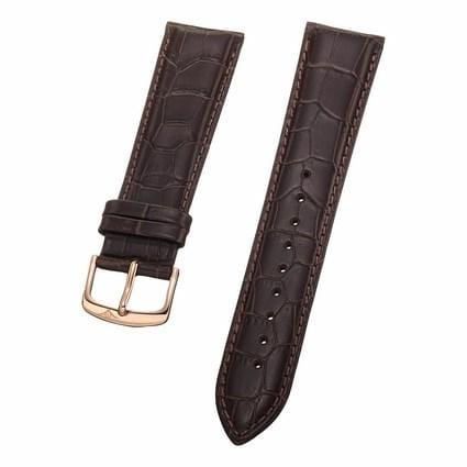 22 mm Brown Leather Replacement Strap with a Rose Gold Tang buckle. This is a direct replacement for Stuhrling model 712.