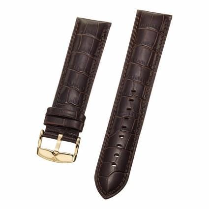 22 mm Brown Leather Replacement Strap with a Yellow Gold Tang buckle. This is a direct replacement for Stuhrling model 720.