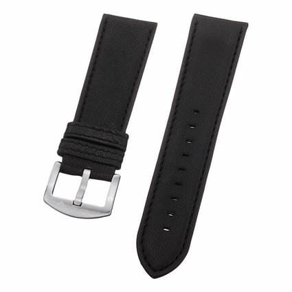 24 mm Black Leather Replacement Strap with a Steel Tang buckle. This is a direct replacement for Stuhrling model 723.