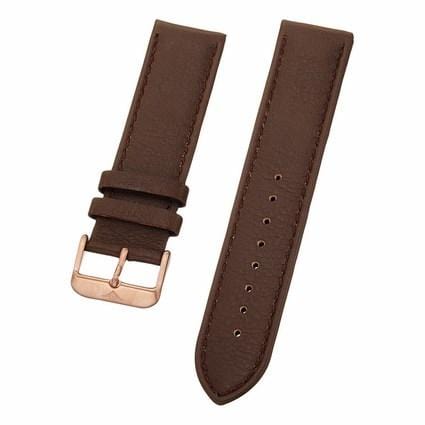 22 mm Brown Leather Replacement Strap with a Rose Gold Tang buckle.
