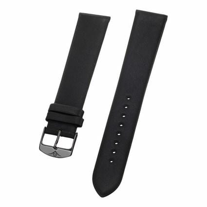 20 mm Black Leather Replacement Strap with a Black Tang buckle. This is a direct replacement for Stuhrling model 734G.