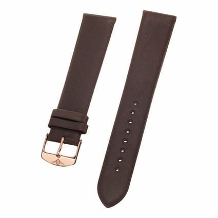 20 mm Brown Leather Replacement Strap with a Rose Gold Tang buckle. This is a direct replacement for Stuhrling model 734G.