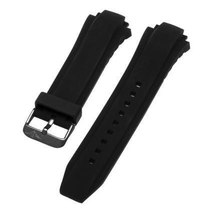 29 mm Black Rubber Replacement Strap with a Black Tang buckle. This is a direct replacement for Stuhrling model 823.