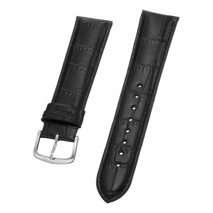 22 mm Black Leather Replacement Strap with a Steel Tang buckle. This is a direct replacement for Stuhrling model 858L.