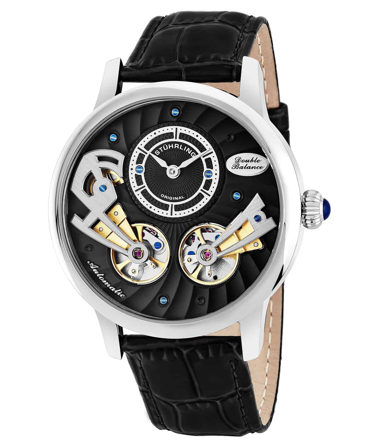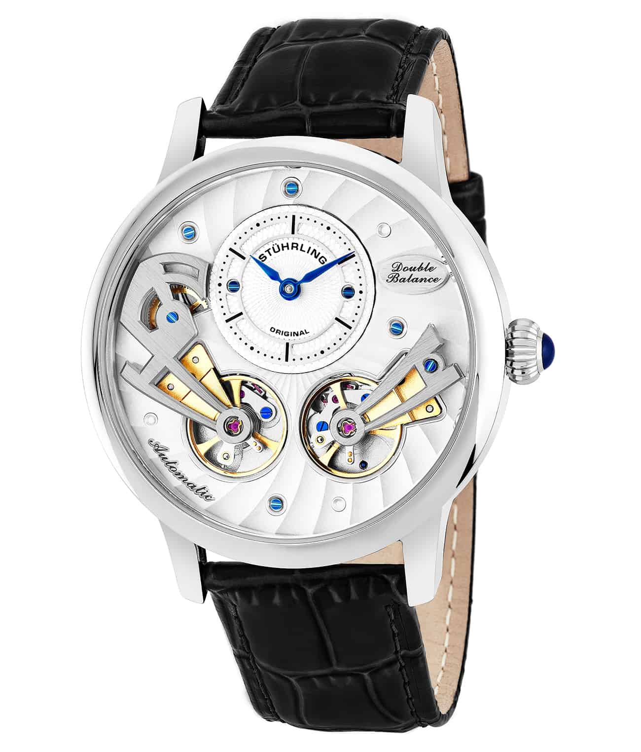 Stainless steel tang buckle with Stuhrling "Wings" logo