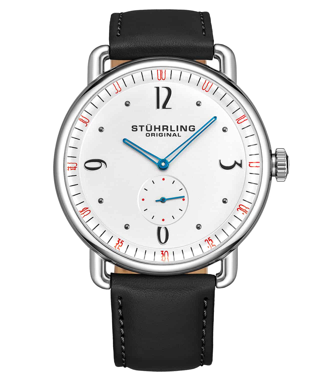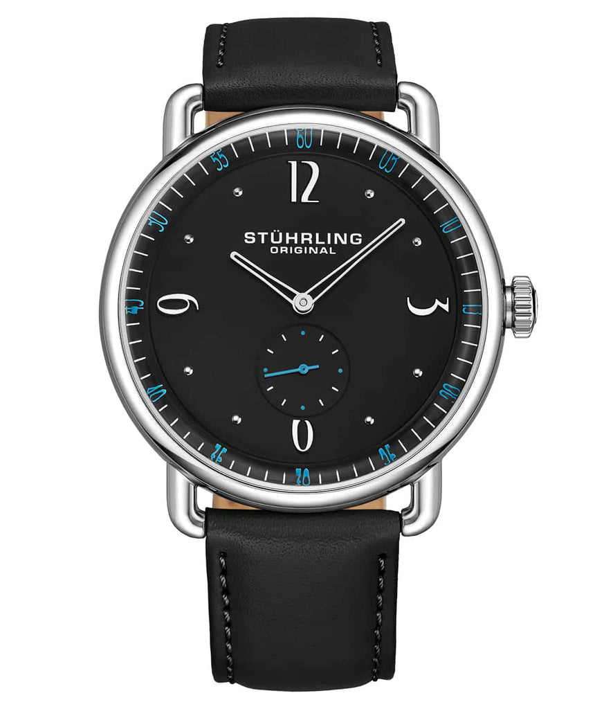 - Suave looks get the Stührling treatment with skeletonized dauphine-style hands and a seconds subdial set against a brushed finish dial.