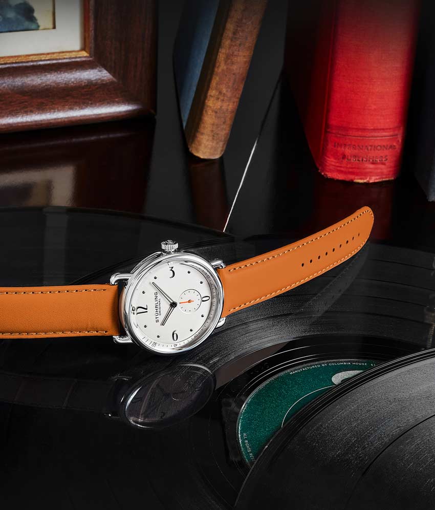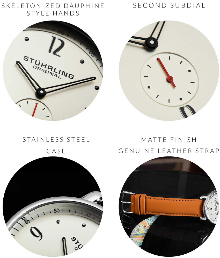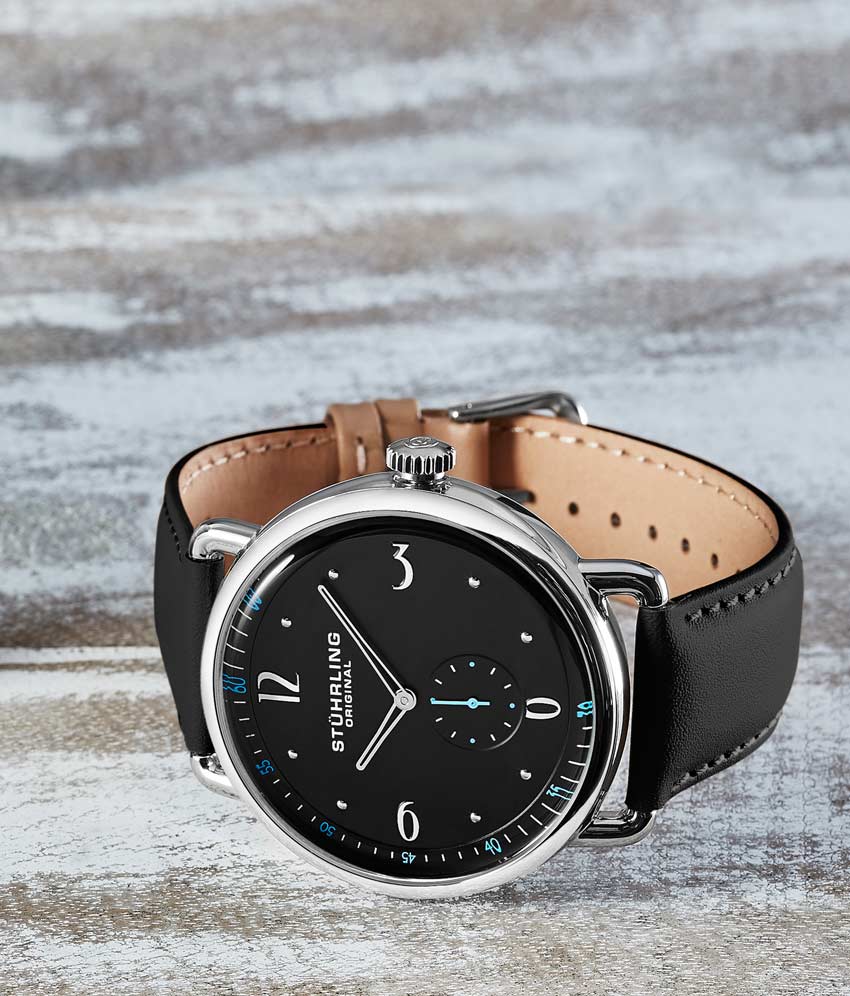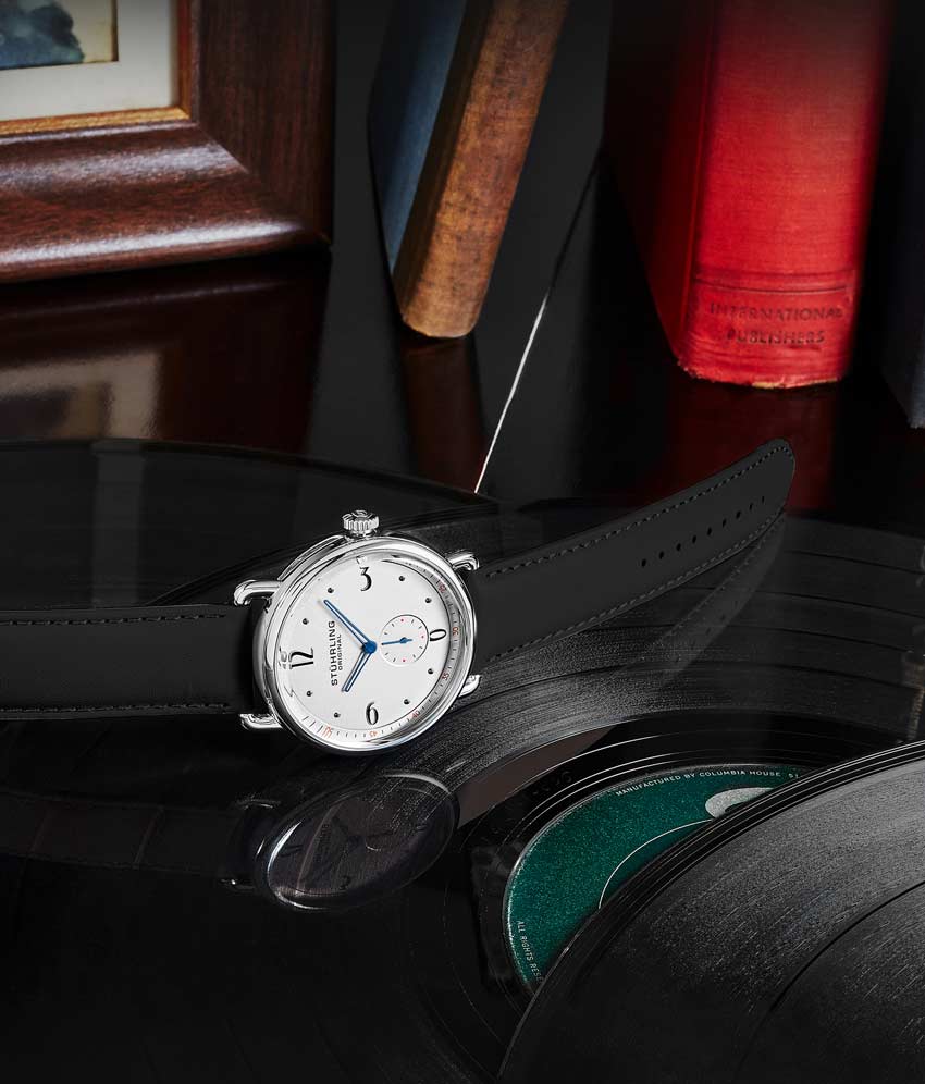 Stainless steel tang buckle with Stuhrling "Wings" logo