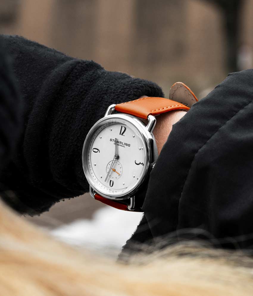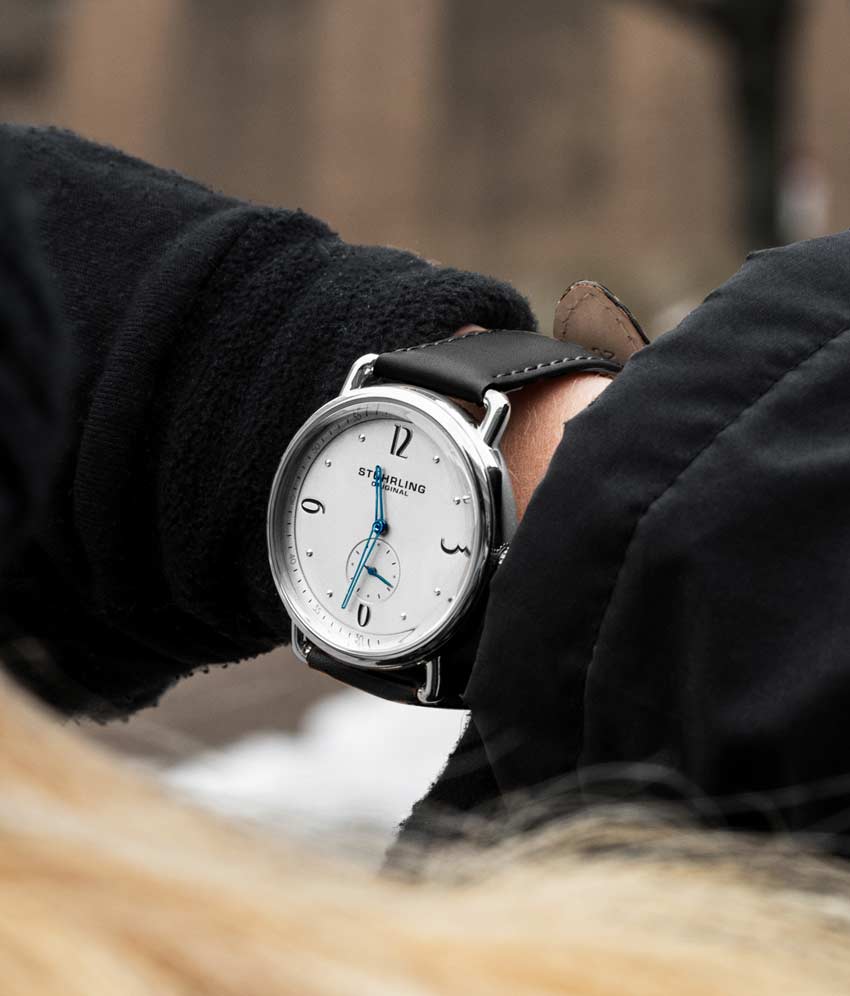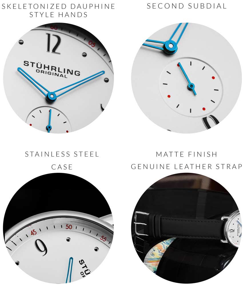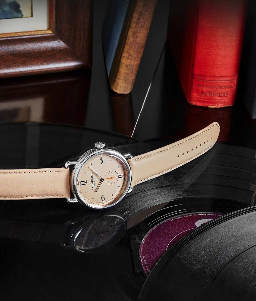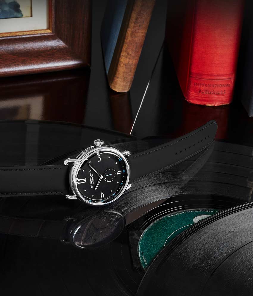 Stainless steel tang buckle with Stuhrling "Wings" logo