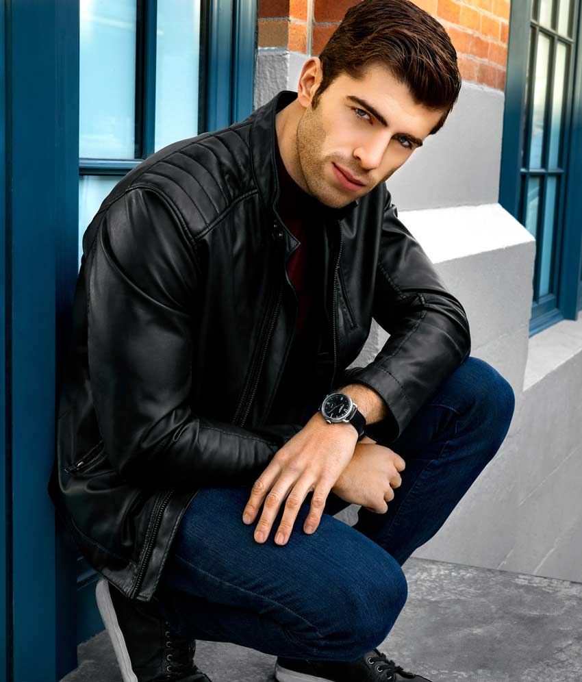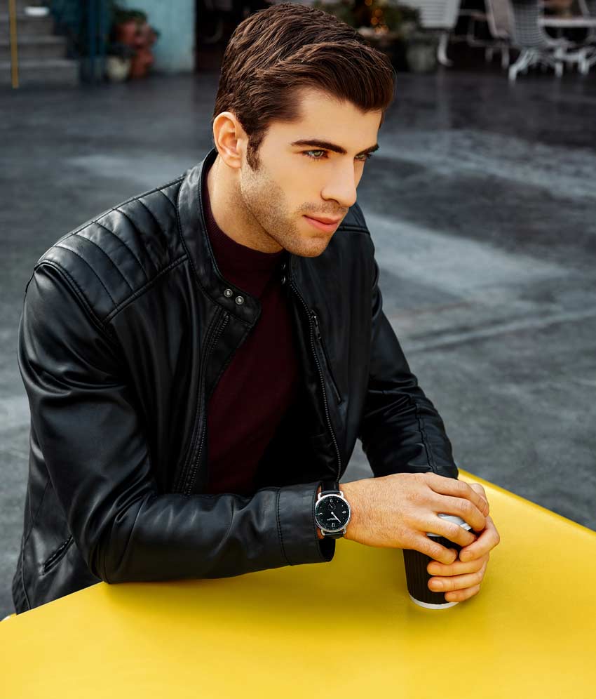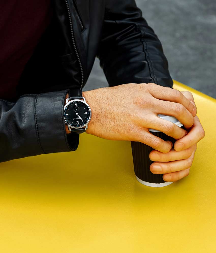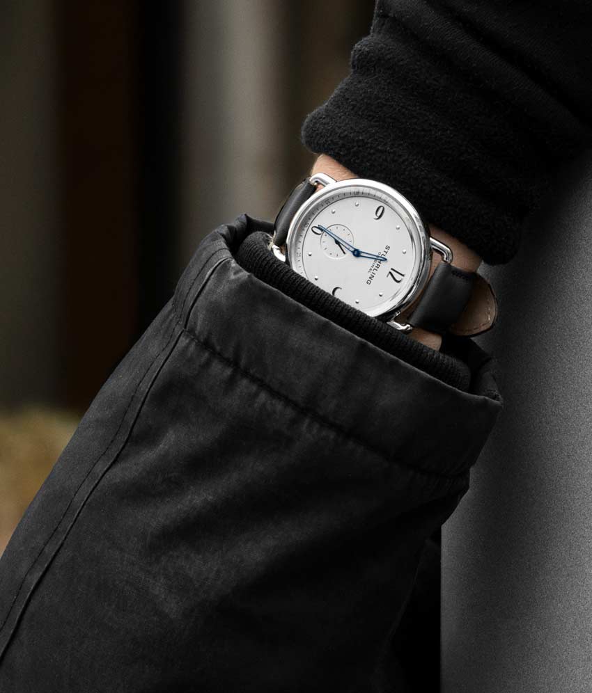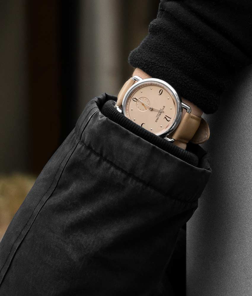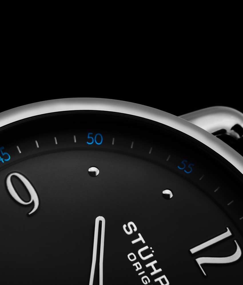 Brushed finish dial with seconds subdial at 6:00 and minutes track on outer ring