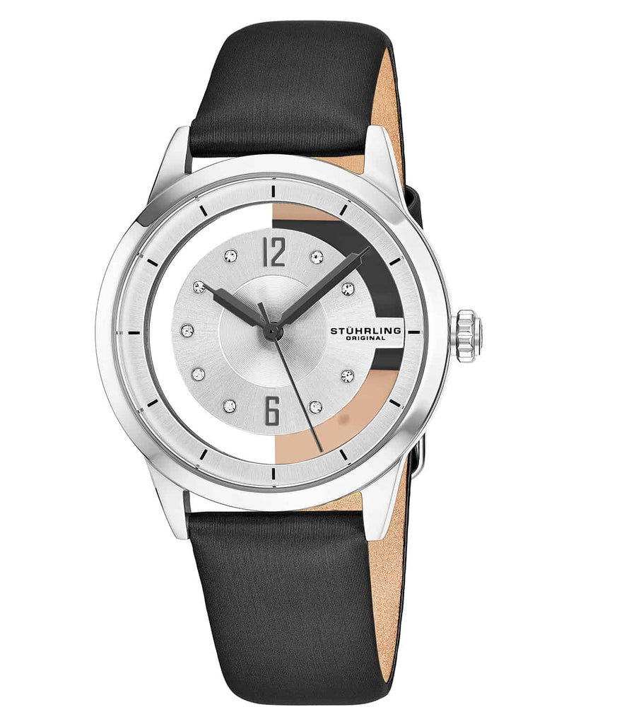 Brushed Finish Guilloche-like Stamped Center Dial with Brushed Finished Spoke-Style Outer Dial with Crystal Accents